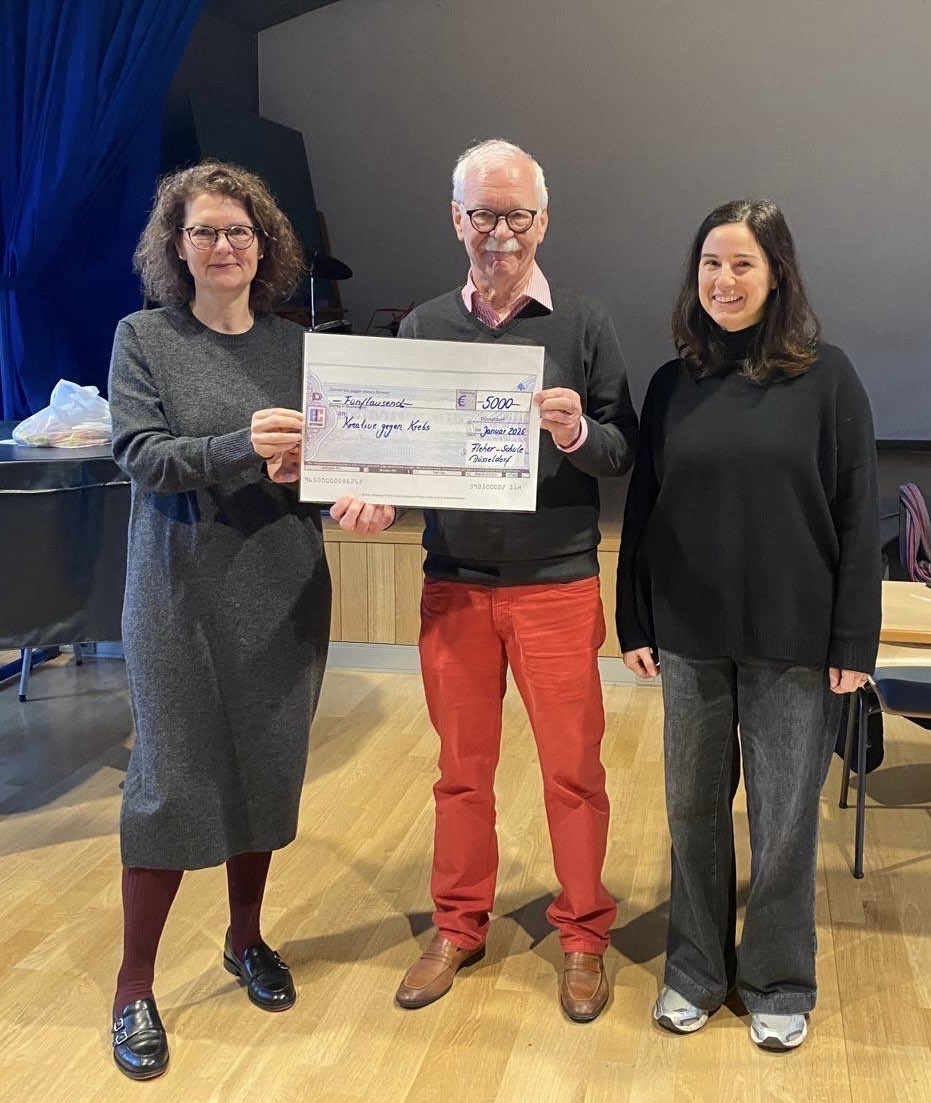Sie bekamen einen Scheck von 5000€ überreicht, die die Kinder der Fleher Schule im letzten Herbst beim Spendenlauf gesammelt haben.